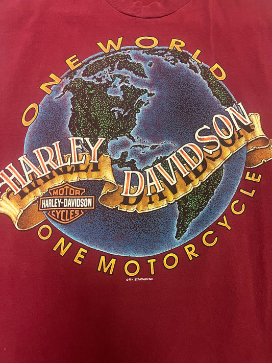 Vintage One World Harley Davidson Cut Off Tee