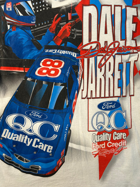 Vintage 90s Dale Jarret Quality Care Race Team NASCAR AOP Tee