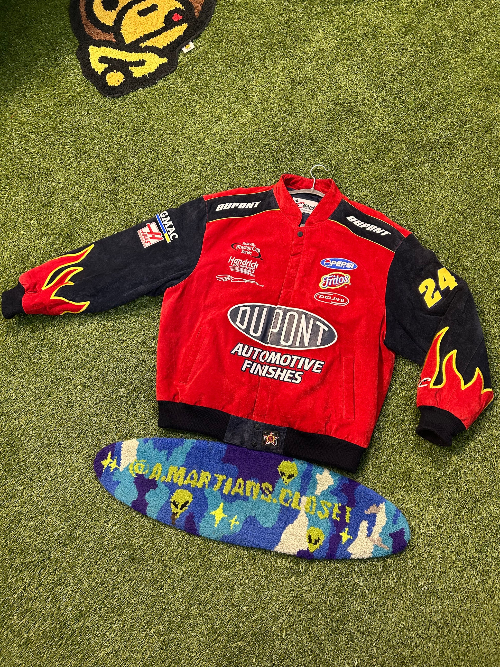 Vintage Jeff Gordon #24 DuPont Automotive Suede Flames NASCAR Heavy Jacket